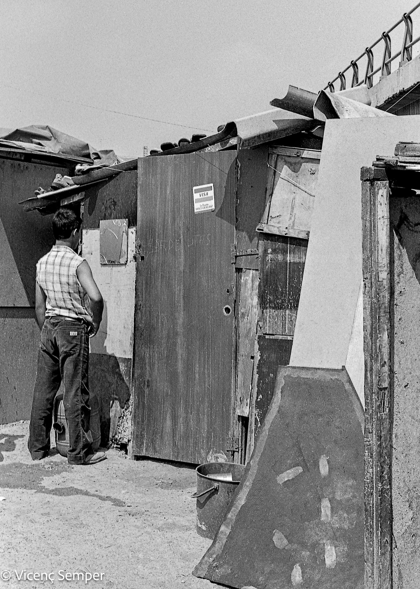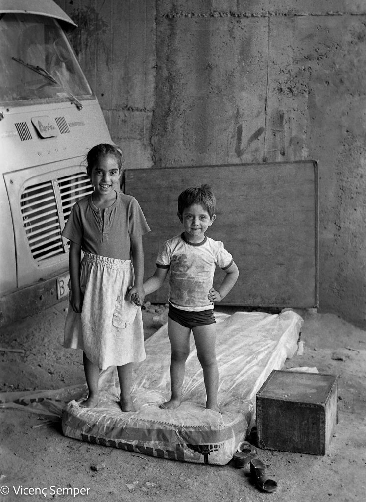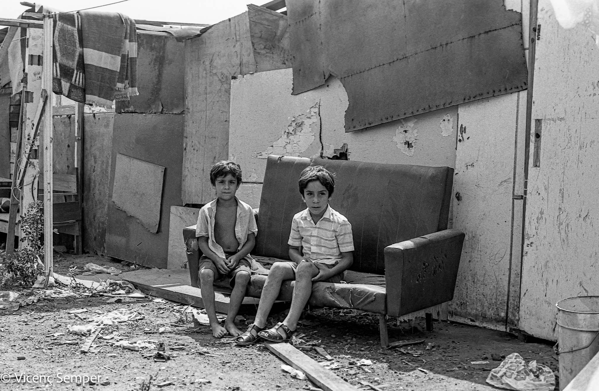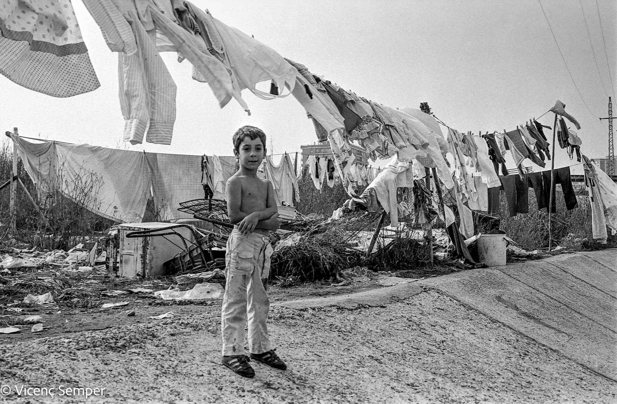 Va arribar un dia, a l’any 82 que em vaig decidir: amb la meva Pentax, tres òptiques fixes i un rodet Ilford de 125 asa, vaig anar a veure l’altre cara de la ciutat. Era un dissabte i els nanos del campament estaven jugant i hi havia pocs adults. Vaig tornar al cap d’unes setmanes per acabar d’enllestir el reportatge, vaig poder fer fotos, però em van dir que ja no tornés més.