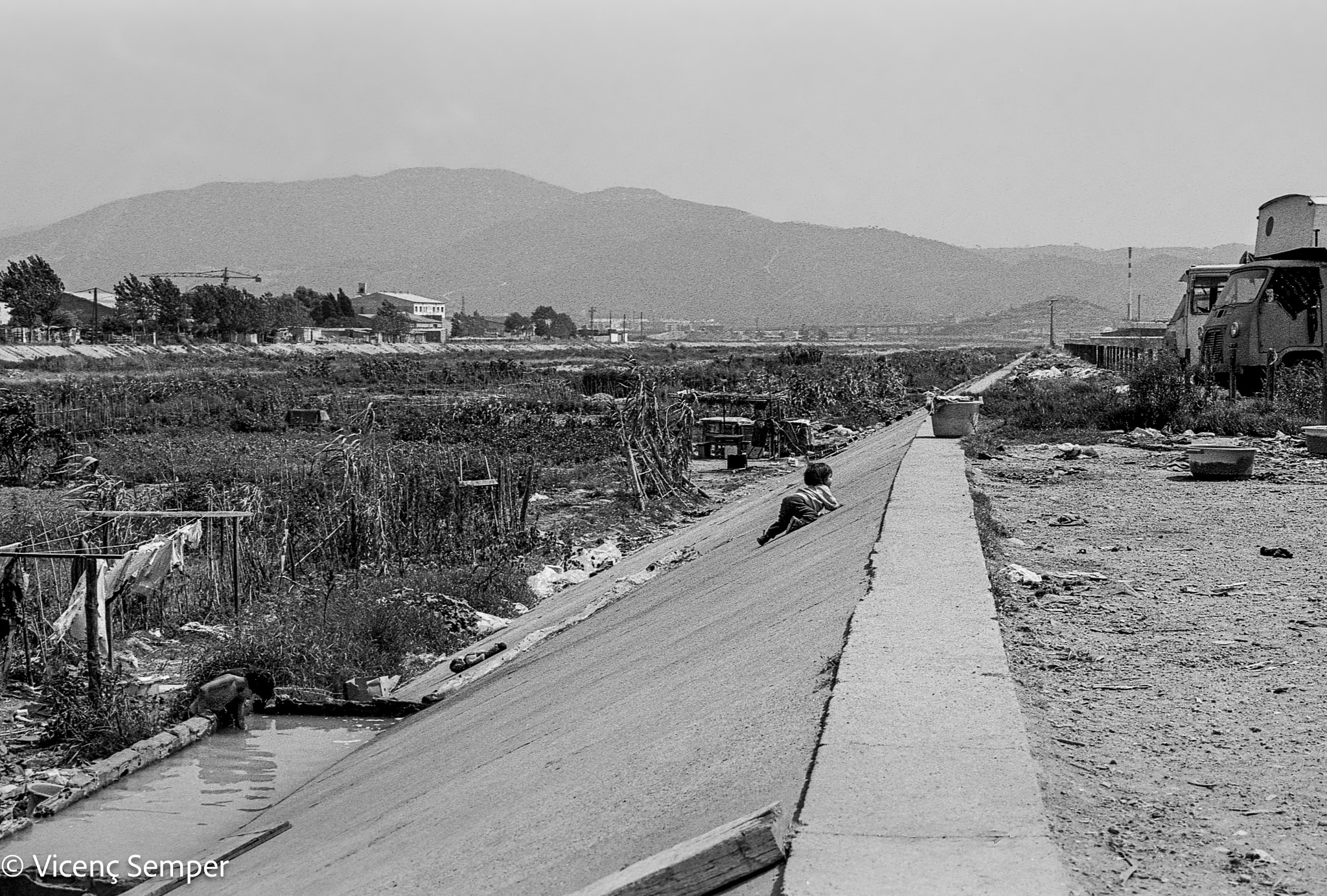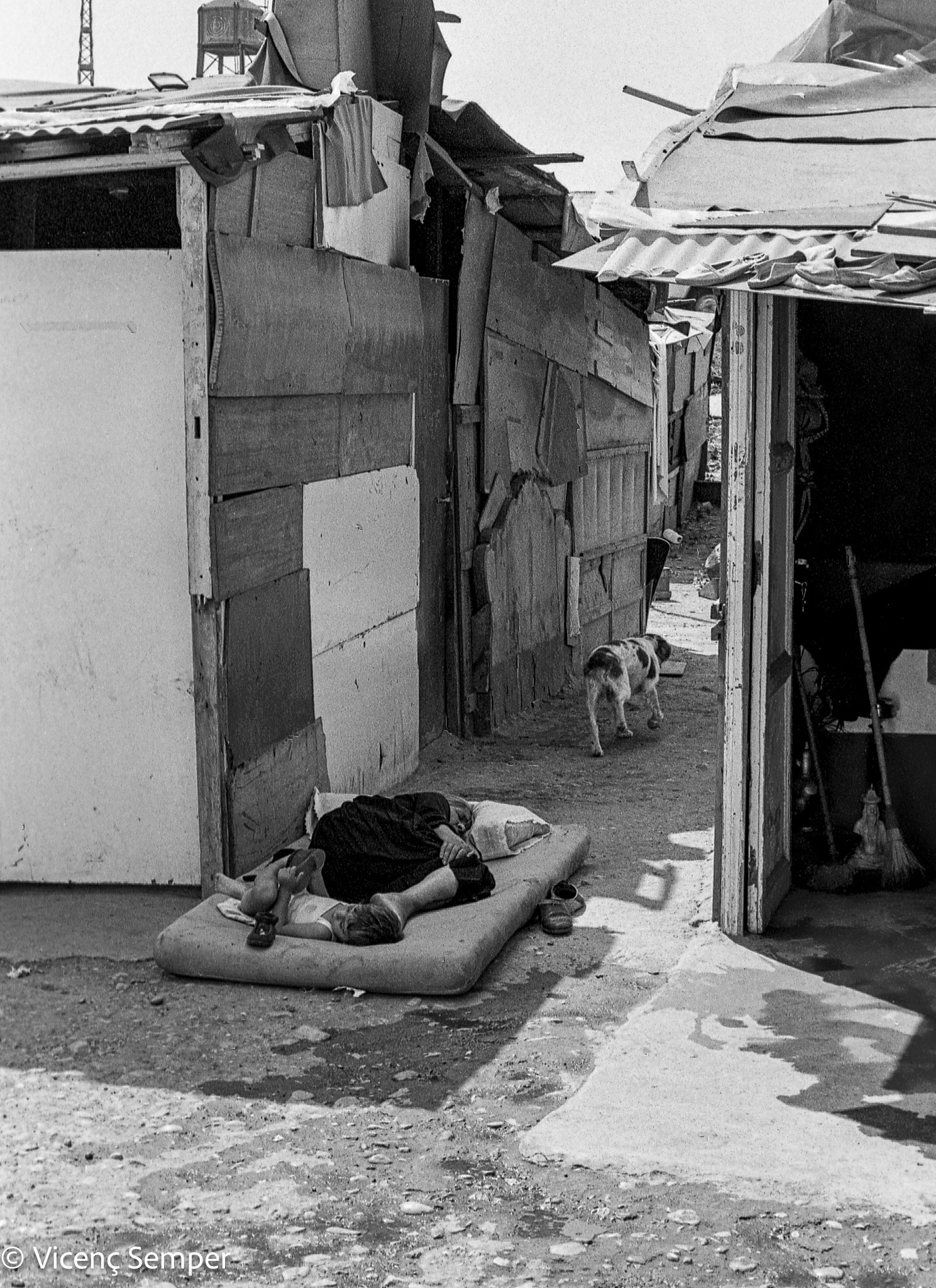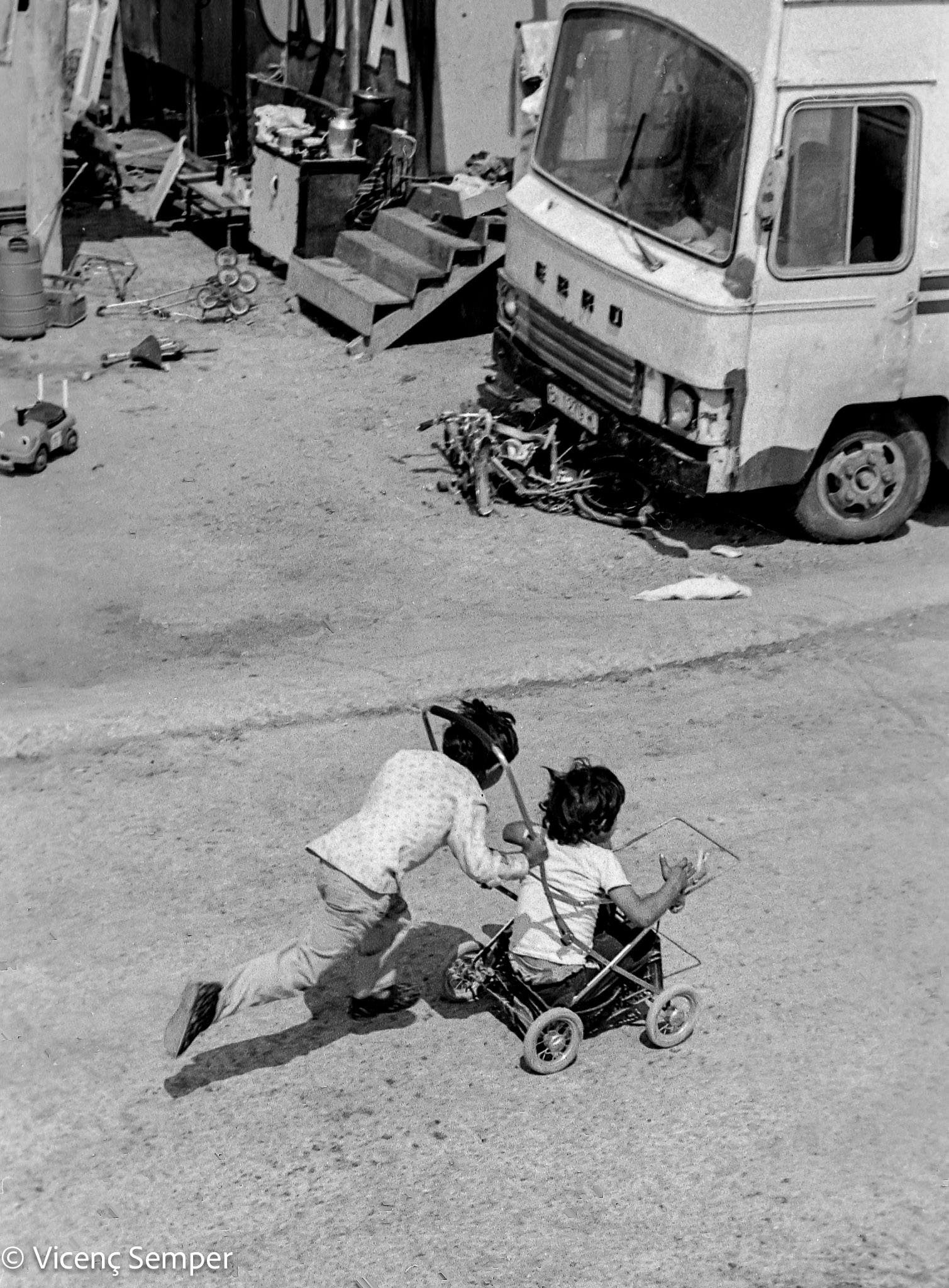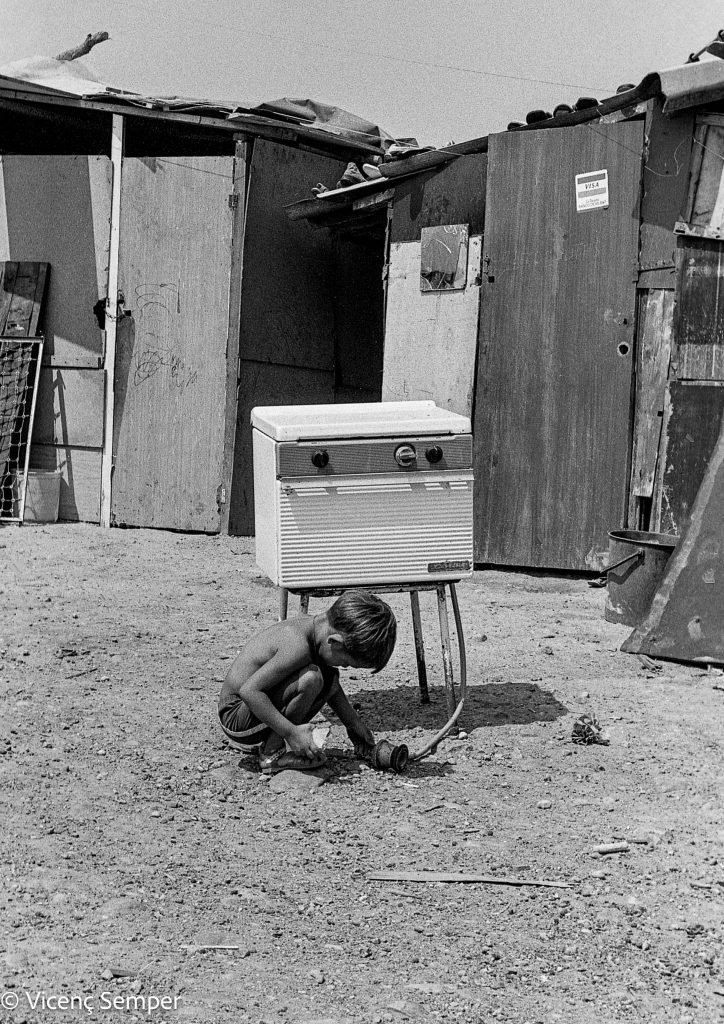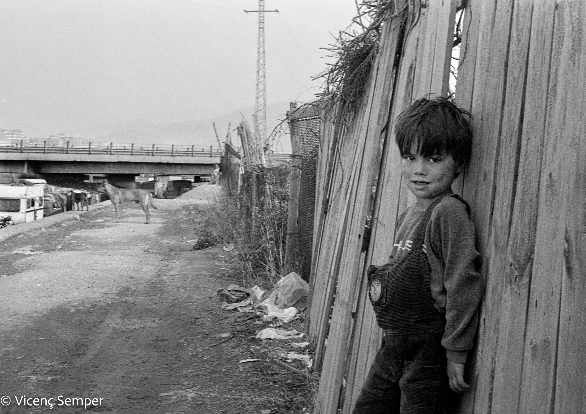 Va arribar un dia, a l’any 82 que em vaig decidir: amb la meva Pentax, tres òptiques fixes i un rodet Ilford de 125 asa, vaig anar a veure l’altre cara de la ciutat. Era un dissabte i els nanos del campament estaven jugant i hi havia pocs adults. Vaig tornar al cap d’unes setmanes per acabar d’enllestir el reportatge, vaig poder fer fotos, però em van dir que ja no tornés més.